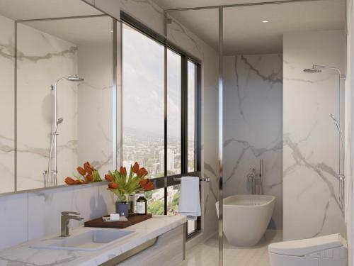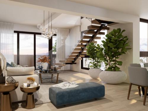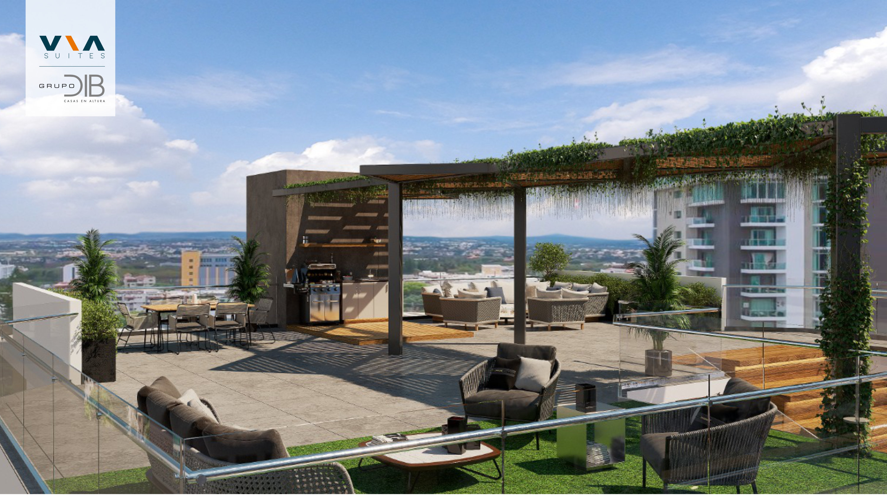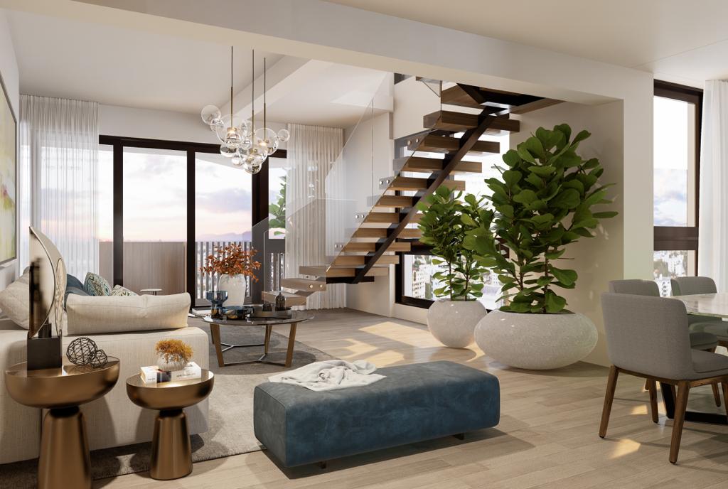 VIA Suites La Esmeralda offers you 21 apartments and penthouse. Apartments balance the elegance of top-quality materials with first-class finishes to deliver spaces in which even the smallest detail has been taken into account. Each apartment has floor-to-ceiling windows, ceiling heights of 3 meters, which will allow you to enjoy the landscape and feel how natural light and fresh air fill your spaces. As well as living room, dining room, balcony, guest bathroom, master bedroom with bathroom and walk in closet, secondary bedroom with bathroom and walk in closet, modern kitchen and appliances, and laundry area. Each apartment comes with a park space. Every apartment has access to the roof social area with views of the entire city of Santiago which includes: gym, covered terrace, grilling area, pool, and activity room.